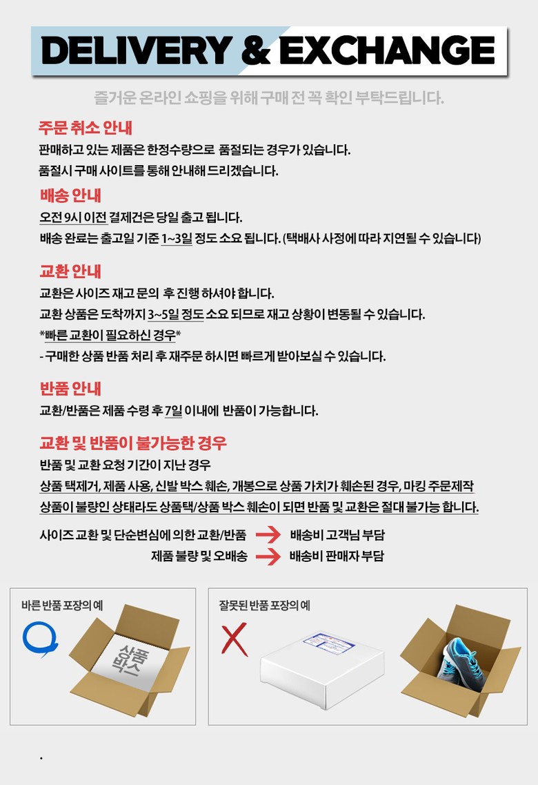 - ㆍ교환/반품에 관한 일반적인 사항은 판매자가 제시사항보다 관계법령이 우선합니다.