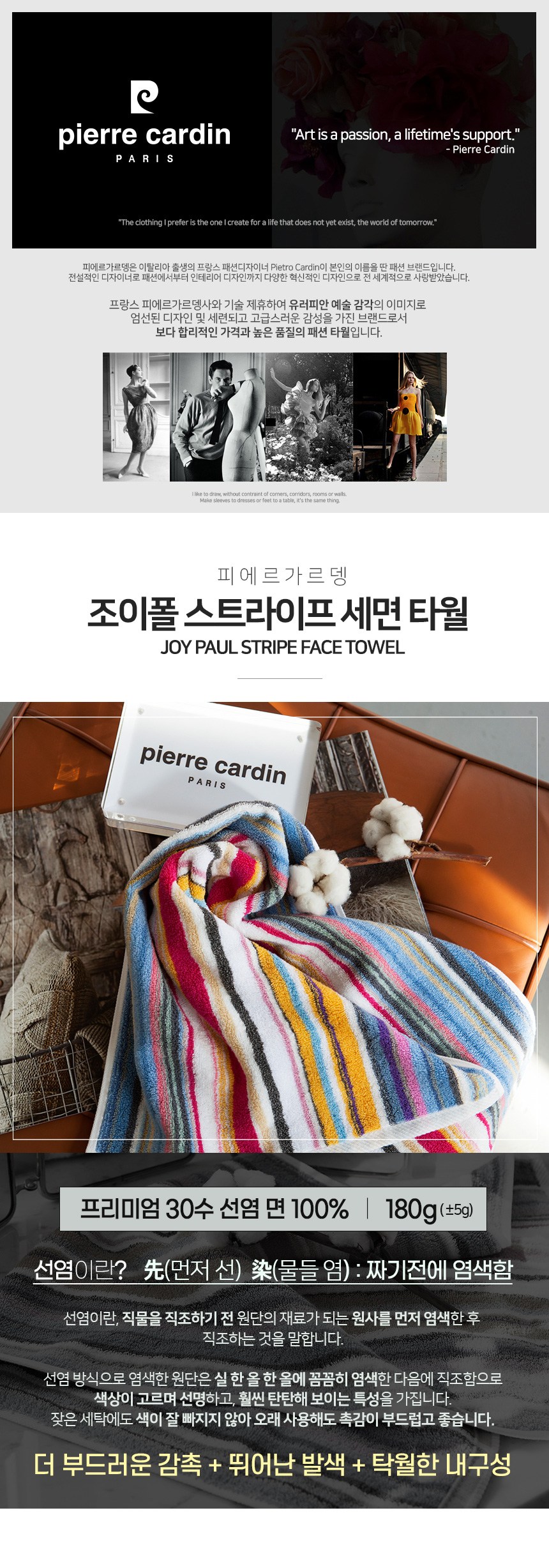 | 품명 및 모델명 | 피에르가르뎅 조이폴 스트라이프 선염세면타월 180g 5장 | 인증/허가 사항 | 해당없음 |