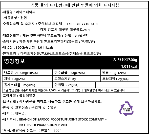 | 포장단위별 내용물의 용량(중량), 수량 | 300g x 2개 | 원재료명 및 함량 | 컨텐츠 참조 |