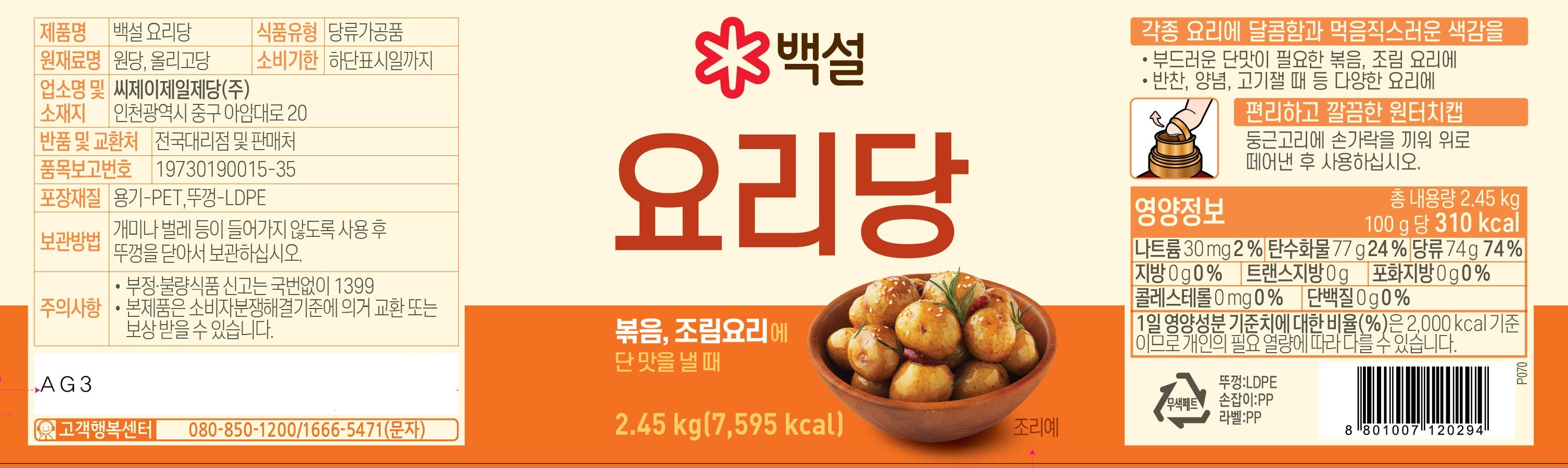 | 제품명 | 백설 요리당 | 식품의 유형 | 컨텐츠 참조 |
