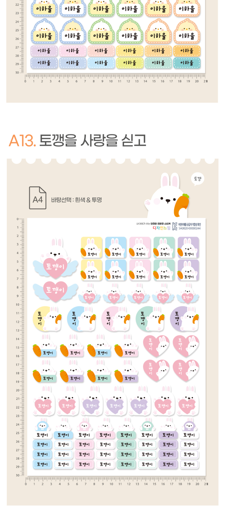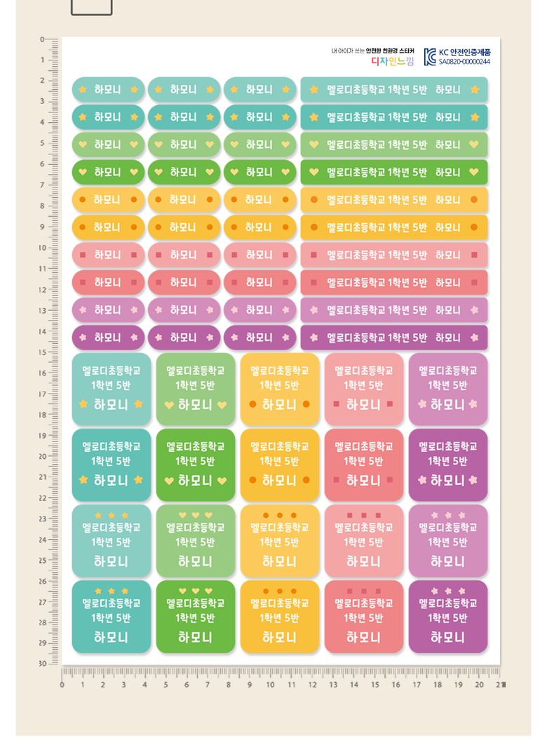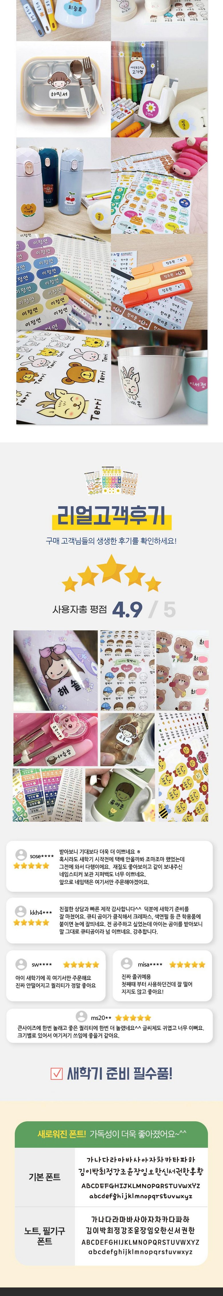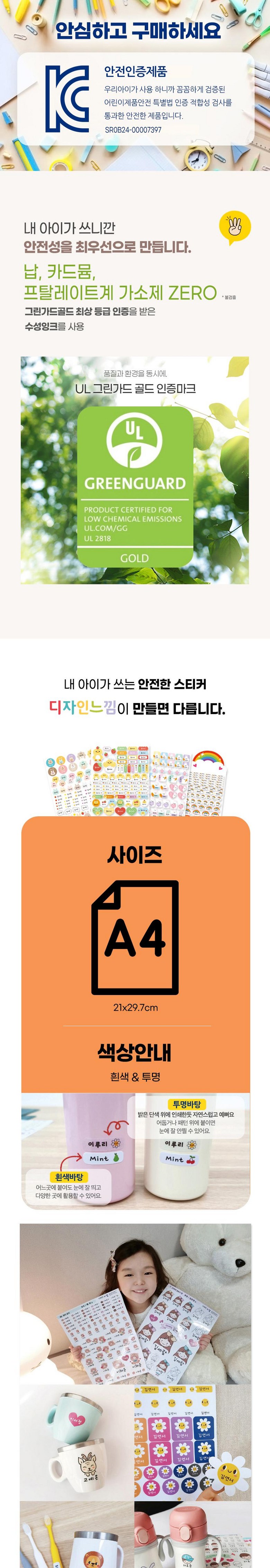 | 품명 및 모델명 | 방수네임스티커 | KC 인증정보 | 어린이제품안전특별법에 따른 KC인증 대상 SR0B24-00007397 |