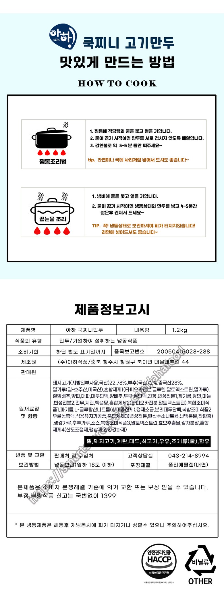 아하만두 1봉+1봉 쿡찌니고기만두1.2kg+쿡찌니고기만두1.2kg (평일 오후2시전 결제주문건 다음날 택배도착), 1.2kg, 2개