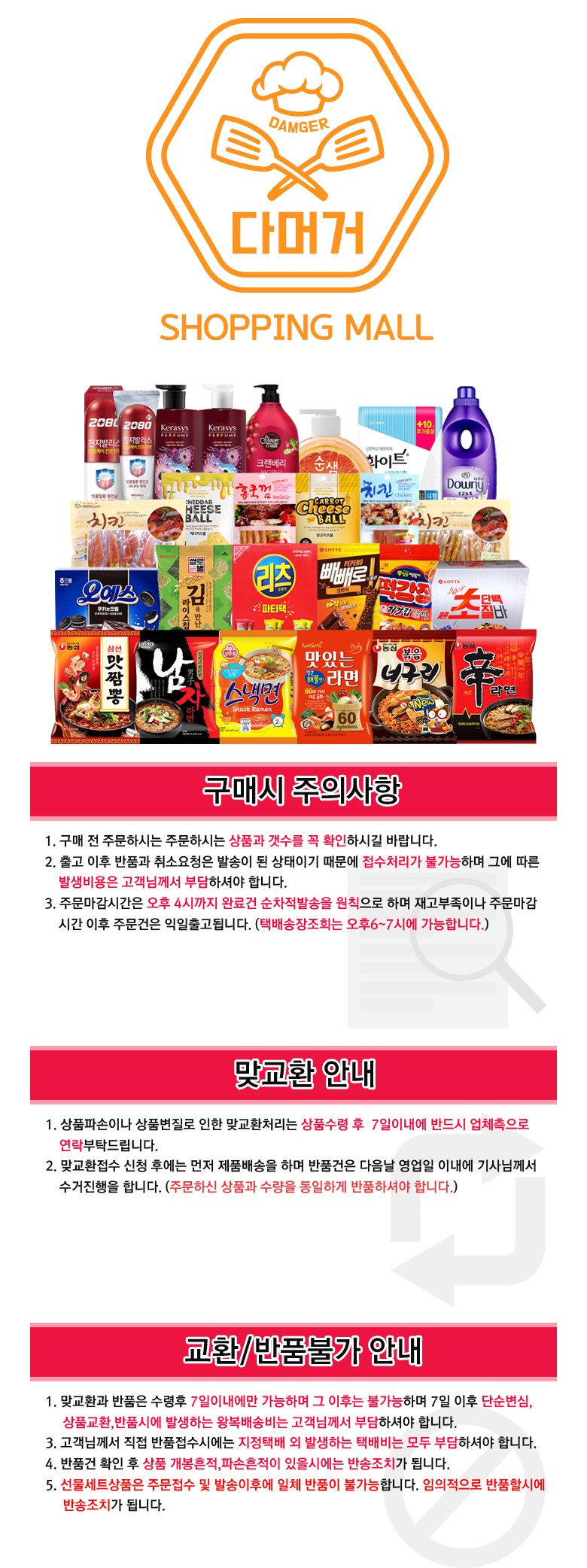 - ㆍ교환/반품에 관한 일반적인 사항은 판매자가 제시사항보다 관계법령이 우선합니다.