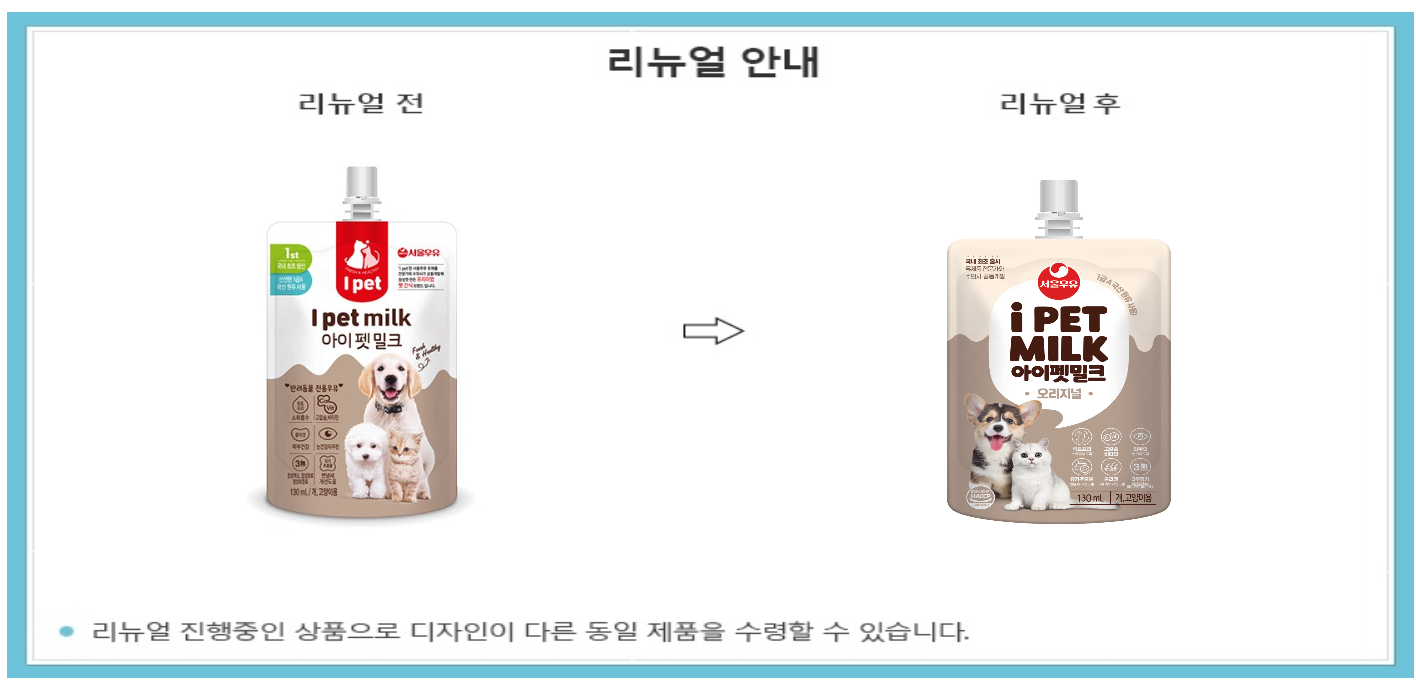 | 품명 및 모델명 | 아이펫밀크 | 인증/허가 사항 | 사료관리법에 따른 성분등록번호 : 컨텐츠 참조 |