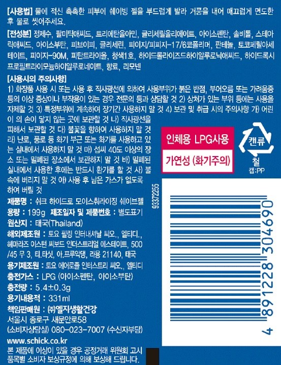 | 화장품제조업자, 화장품책임판매업자 및 맞춤형화장품판매업자 | 컨텐츠 참조 | 제조국 | 컨텐츠 참조 |