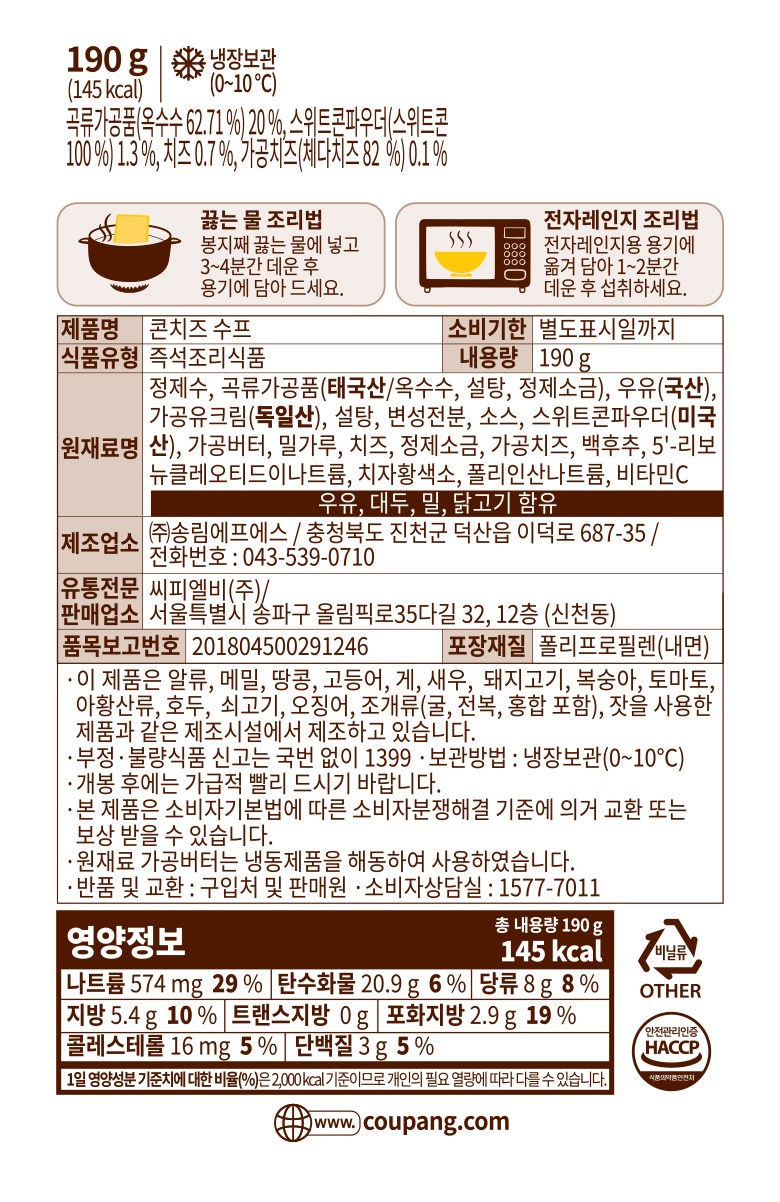 | 포장단위별 내용물의 용량(중량), 수량 | 컨텐츠 참조 | 원재료명 및 함량 | 컨텐츠 참조 |