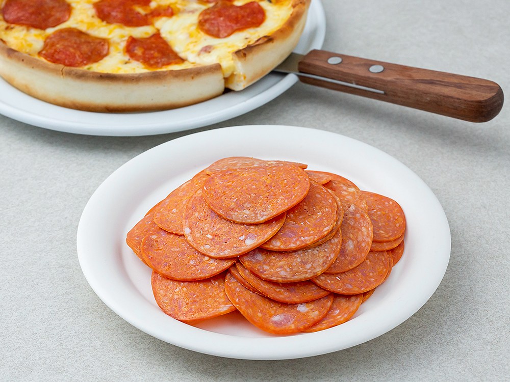피자나 토스트에 맛있는 감칠맛을 더해줄 페파로니예요. 짭조름하면서도 살짝 매콤하지요. 사용하기 좋은 두께로 슬라이스 되어 음식 위에 올리기 좋답니다. 페파로니 토핑을 올려 나만의 개성이 가득한 메뉴를 완성해보세요.