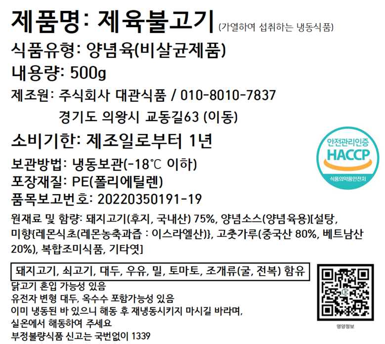 상호/대표자 | 주식회사대관식품 / 최재희 | 사업장 소재지 | 경기도 의왕시 교동길 63 1층 101,102호 |