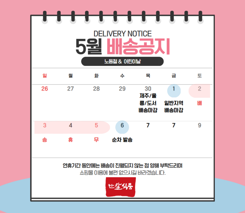 | 배송기간 | ㆍ도서산간 지역 등은 배송에 3-5일이 더 소요될 수 있습니다. - 천재지변, 물량 수급 변동 등 예외적인 사유 발생 시, 다소 지연될 수 있는 점 양해 부탁드립니다. | ||
