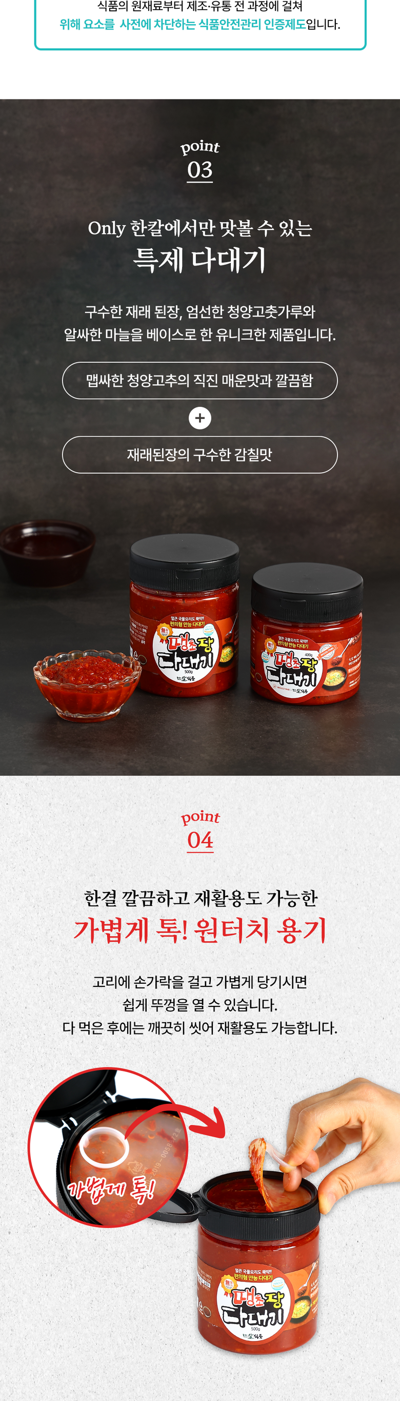| 제품명 | 한칼 땡초장다대기 | 식품의 유형 | 상품 상세페이지 참조 |