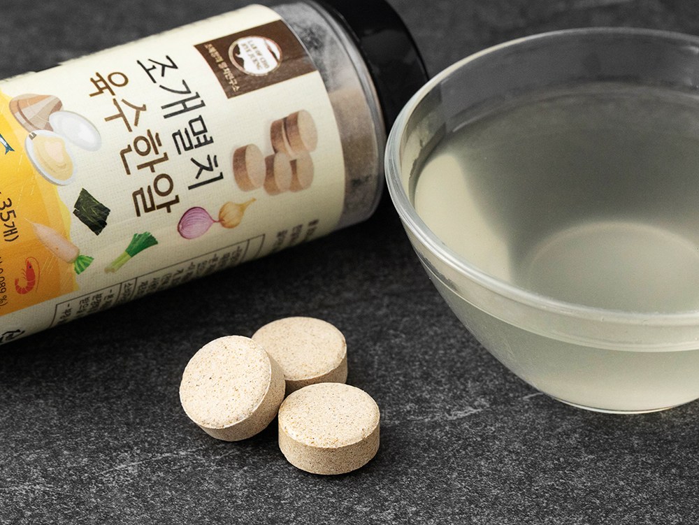 한 알이면 시원하고 깊은 국물을 손쉽게 완성할 수 있는 육수한알이에요. 동그랗고 앙증맞은 몸에 고소하고 진한 감칠맛을 가득 품었지요. 육수를 우려내는 번거로운 과정 없이 쉽고 간편하게 요리를 완성할 수 있게 도와준답니다.