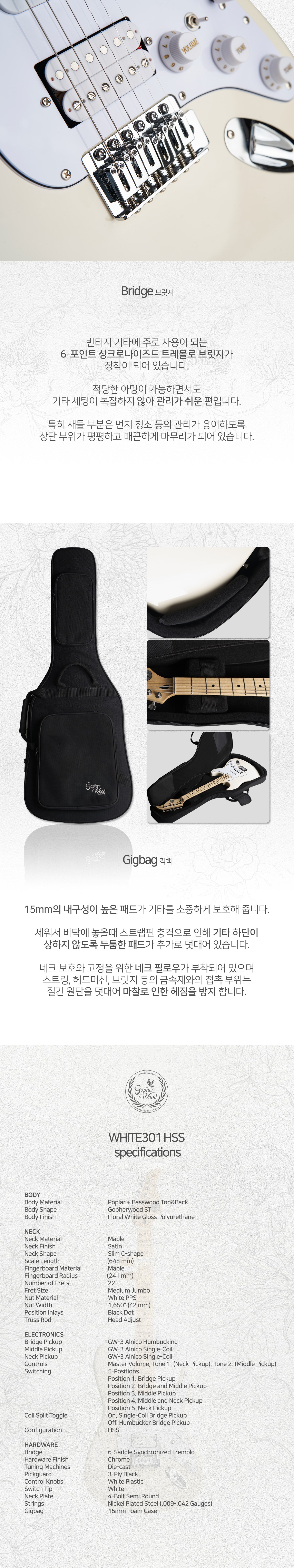 | 품명 및 모델명 | 고퍼우드 White301 HSS G 일렉 기타 | 크기 | 컨텐츠 참조 |