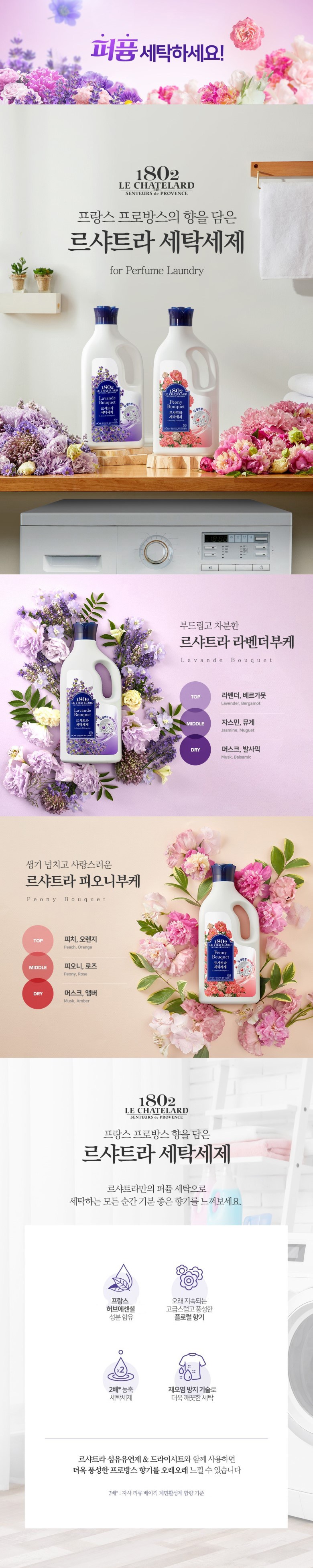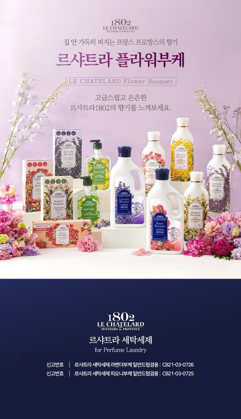 | 품목 및 제품명 | 세탁세제 / 르샤트라 세탁세제 피오니부케 일반드럼겸용 | 용도(표백제의 경우 계열을 함께표시) 및 제형 | 섬유용 / 비분사형-액체형 |