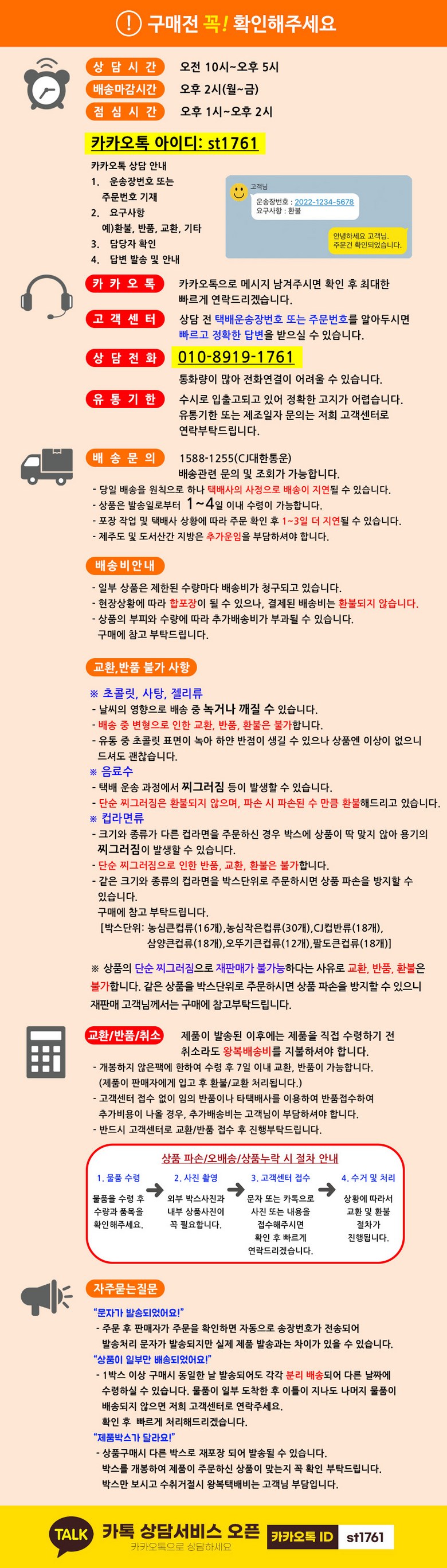 - ㆍ모니터 해상도의 차이로 인해 색상이나 이미지가 실제와 달라, 고객이 단순 변심으로 교환/반품을 무료로 요청하는 경우