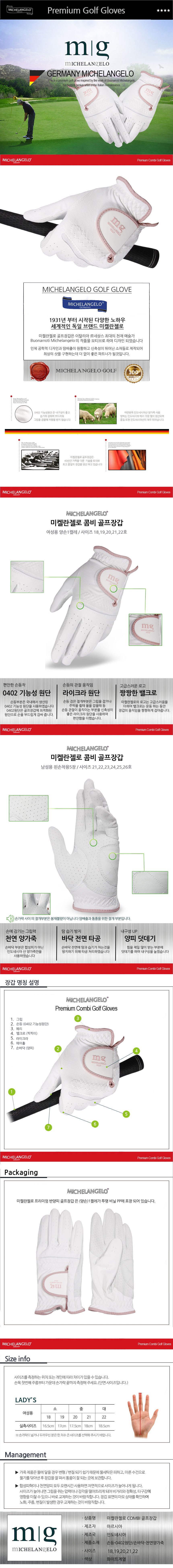 | 품명 및 모델명 | 여성용 미켈란젤로 프리미엄 콤비 반양피 골프장갑 양손 세트 | KC 인증정보 | 해당없음 |