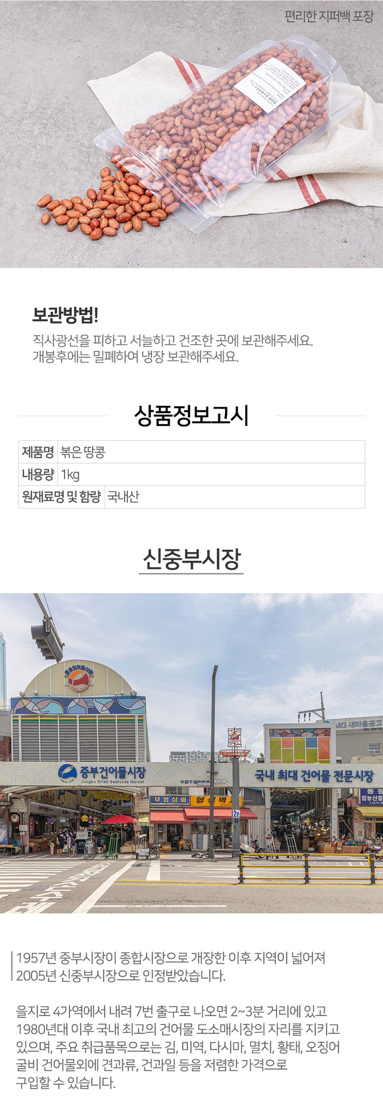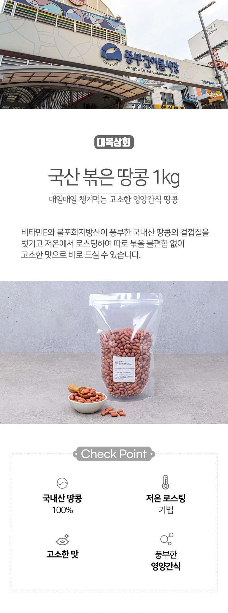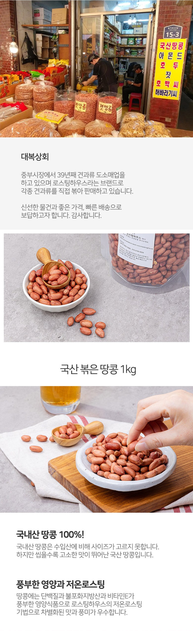 | 품목 또는 명칭 | 국산볶음땅콩 1kg | 포장단위별 내용물의 용량(중량),수량,크기 | 국산볶음땅콩 1kg |