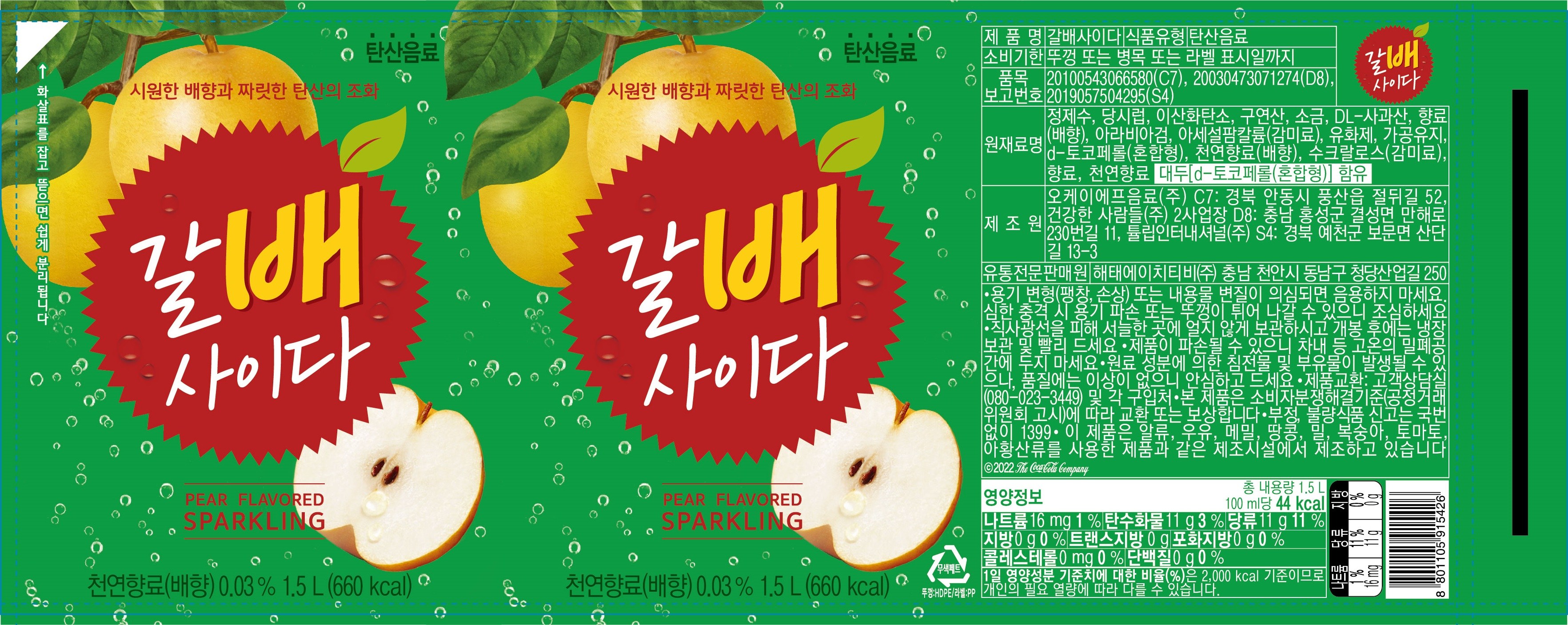 | 제품명 | 갈배 사이다 | 식품의 유형 | 컨텐츠 참조 |