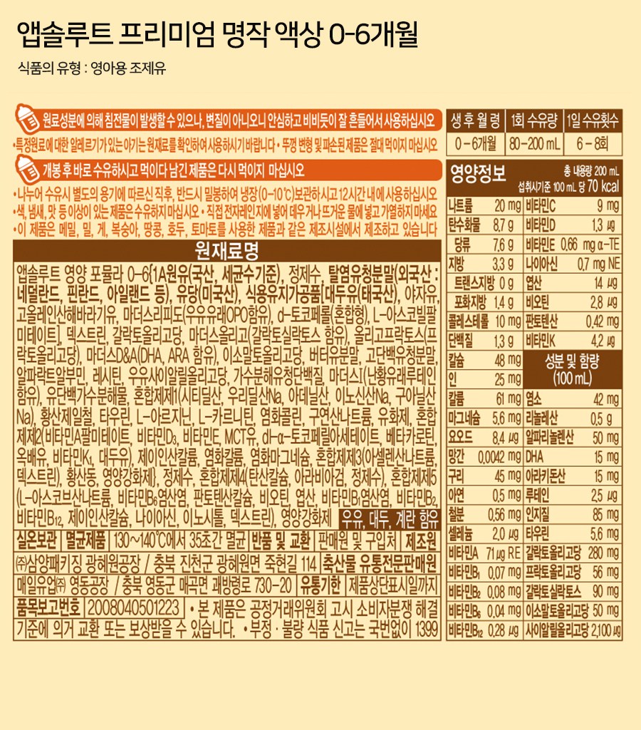 | 제품명 | 컨텐츠참조 | 식품의 유형 | 영아용 조제유 |