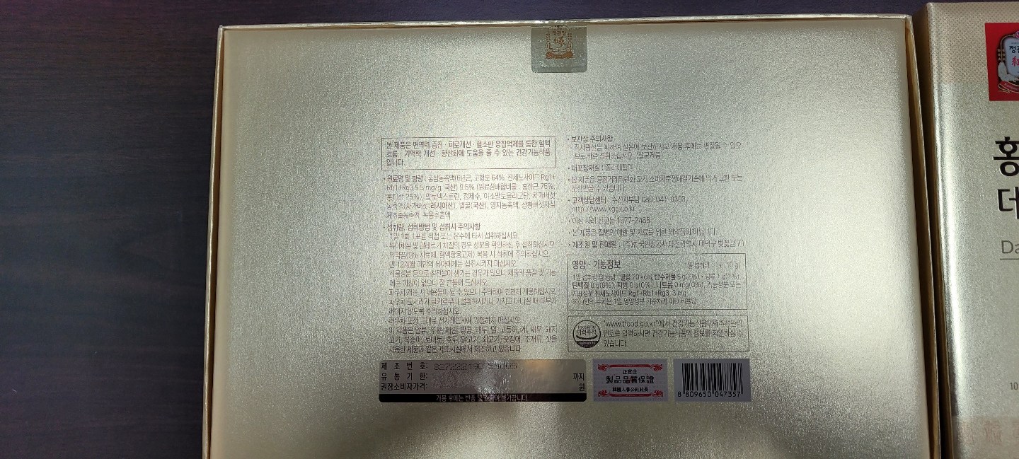 | 제품명 | 홍삼보윤정 데일리스틱 | 제조업소의 명칭과 소재지 | 컨텐츠 참조 |