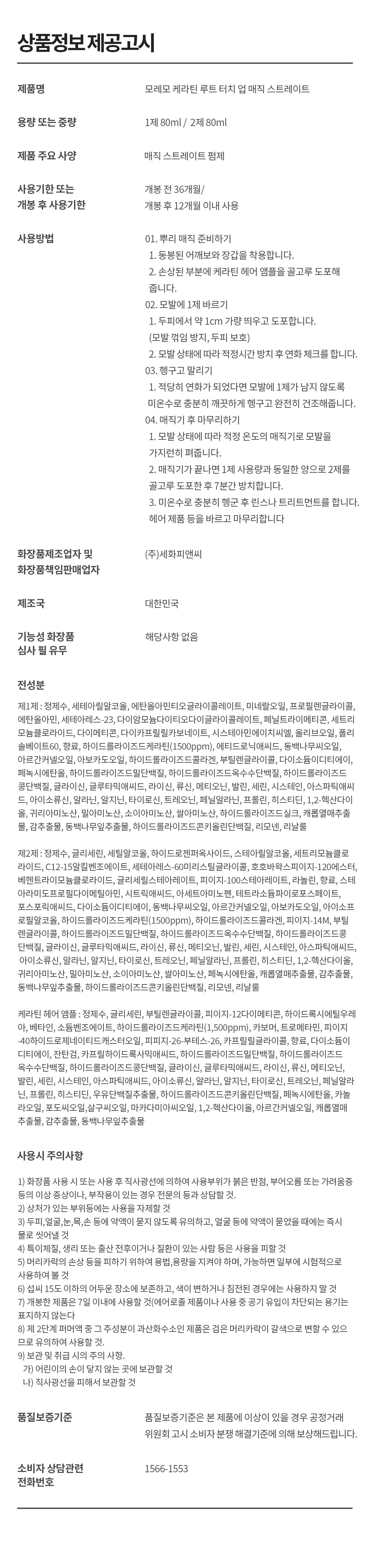 | 용량(중량) | 컨텐츠 참조 | 제품 주요 사양 | 모든 모발용 |