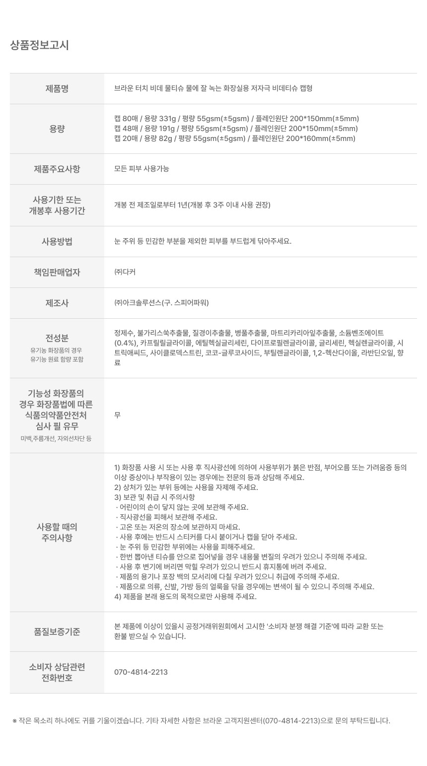| 용량(중량) | 컨텐츠 참조 | 제품 주요 사양 | 모든 피부용 |
