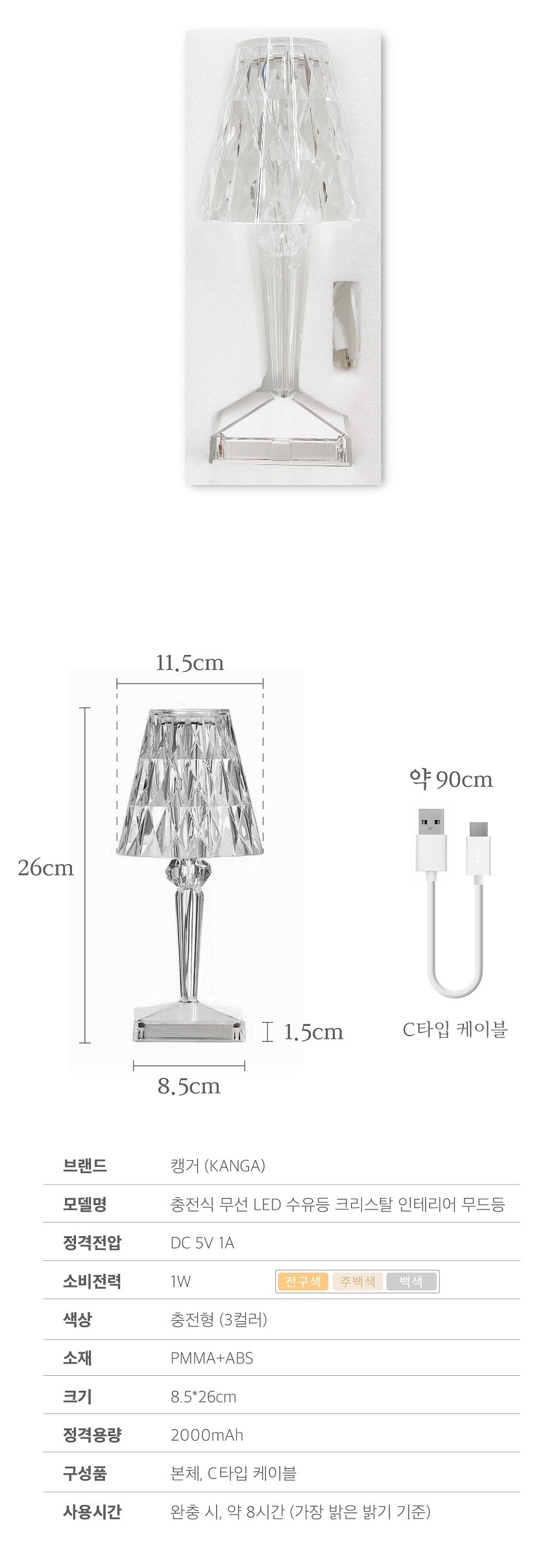 | 품명 및 모델명 | 캥거 충전식 무선 LED 크리스탈 무드등 | KC 인증정보 | 해당없음 |