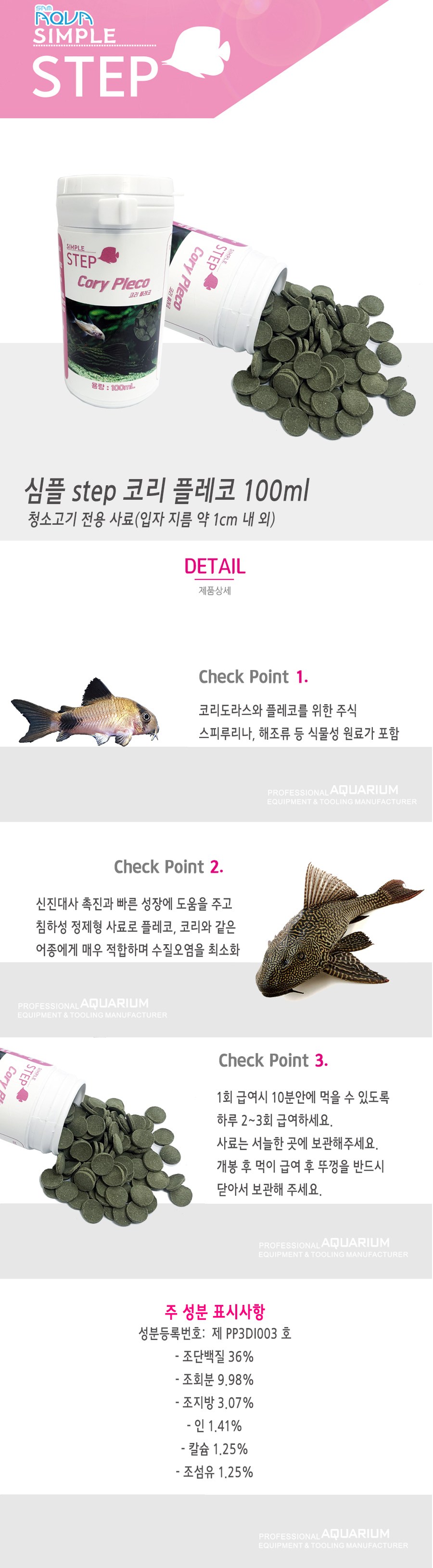 | 품명 및 모델명 | 심플 step 코리 플레코 전용사료 | 인증사항 | 사료관리법에 따른 성분등록번호 : 컨텐츠 참조 |