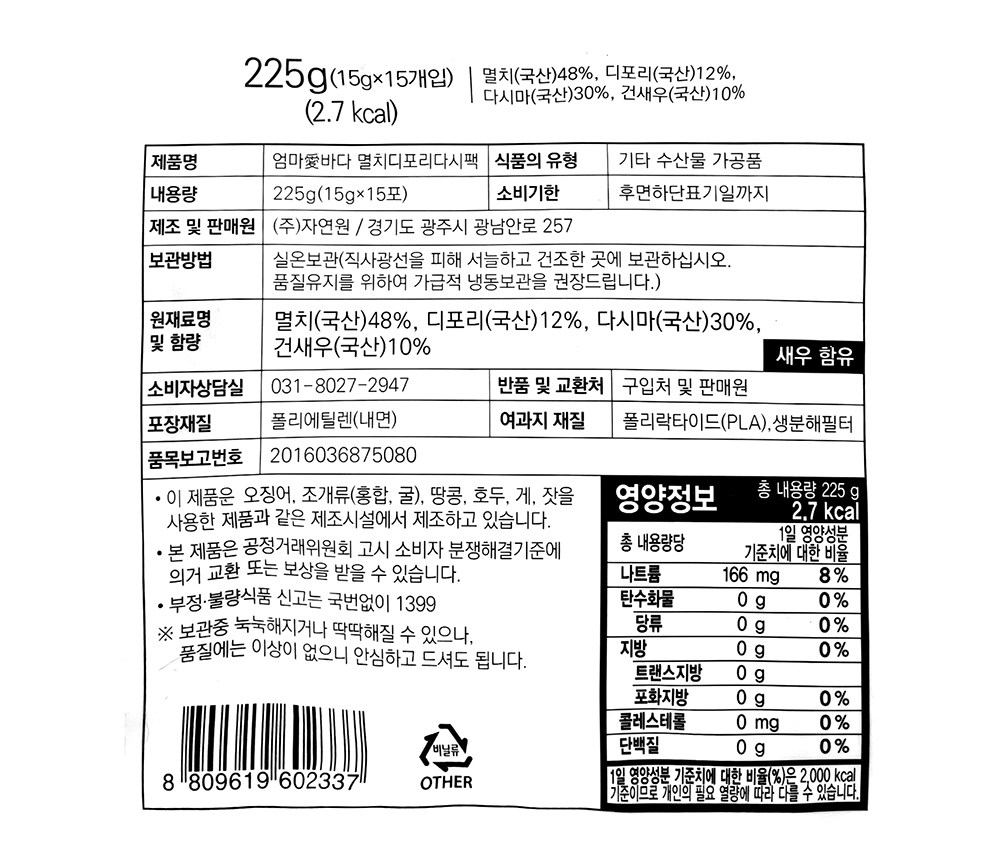 멸치 디포리 다시팩