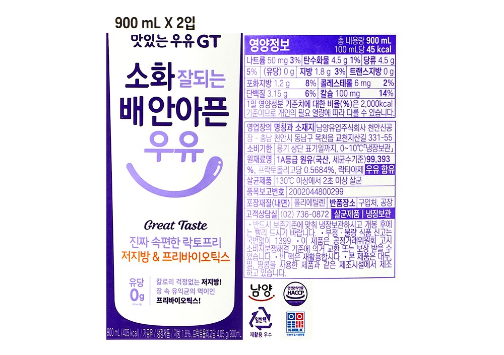 | 제품명 | 진짜 속편한 락토프리 저지방 & 프리바이오틱스 | 식품의 유형 | 컨텐츠 참조 |