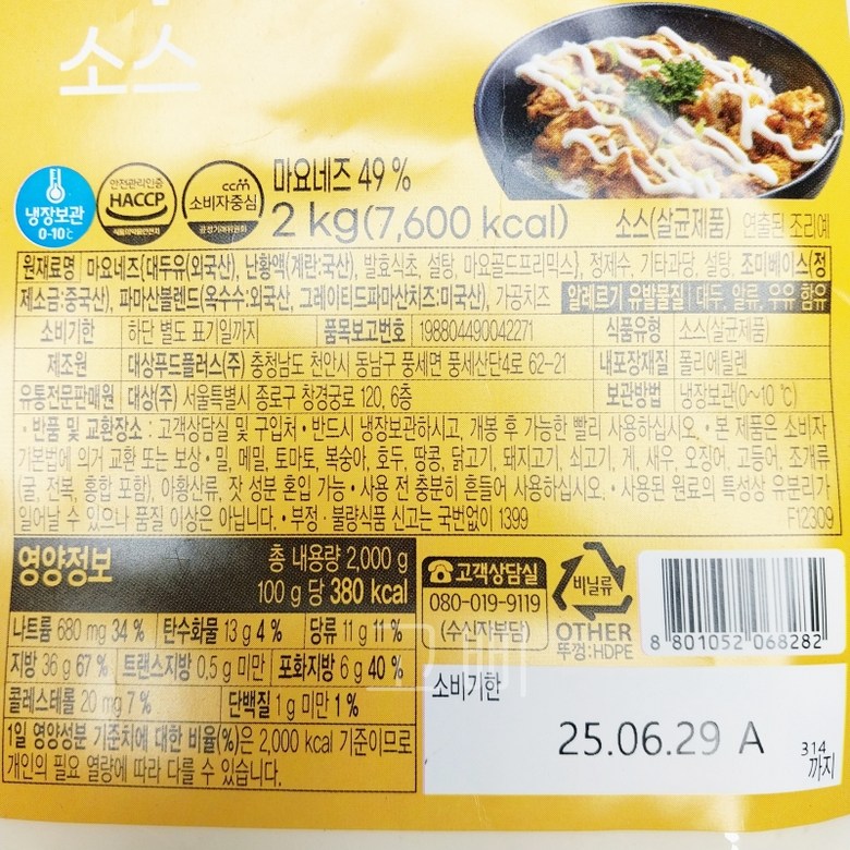 | 제조연월일, 소비기한 또는 품질유지기한 | 상품 상세페이지 참조 | 세부 품목군별 표시사항 | 상품 상세페이지 참조 |