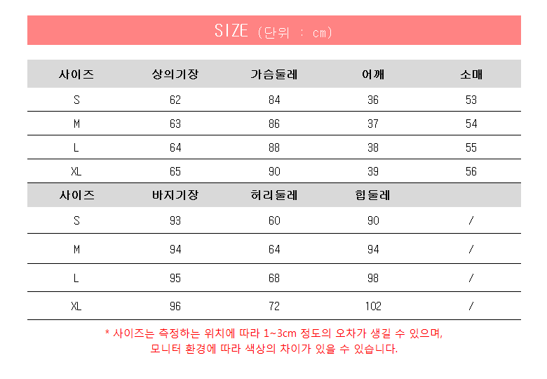 - 의류 핏: 슬림핏