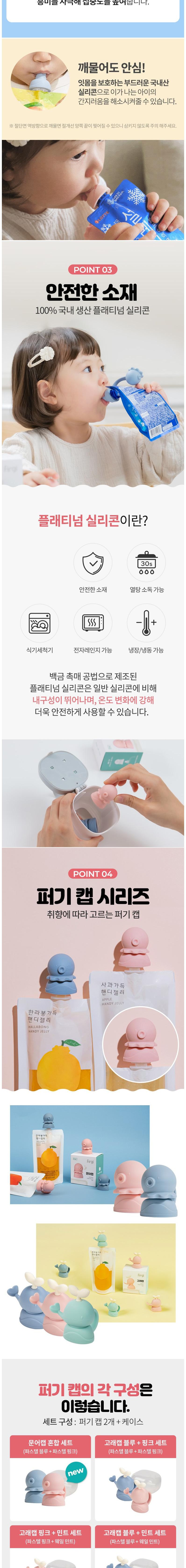 | 품명 및 모델명 | 퍼기 유아용 이유식 파우치 토퍼 고래캡 2종 세트 | 재질 | 컨텐츠 참조 |