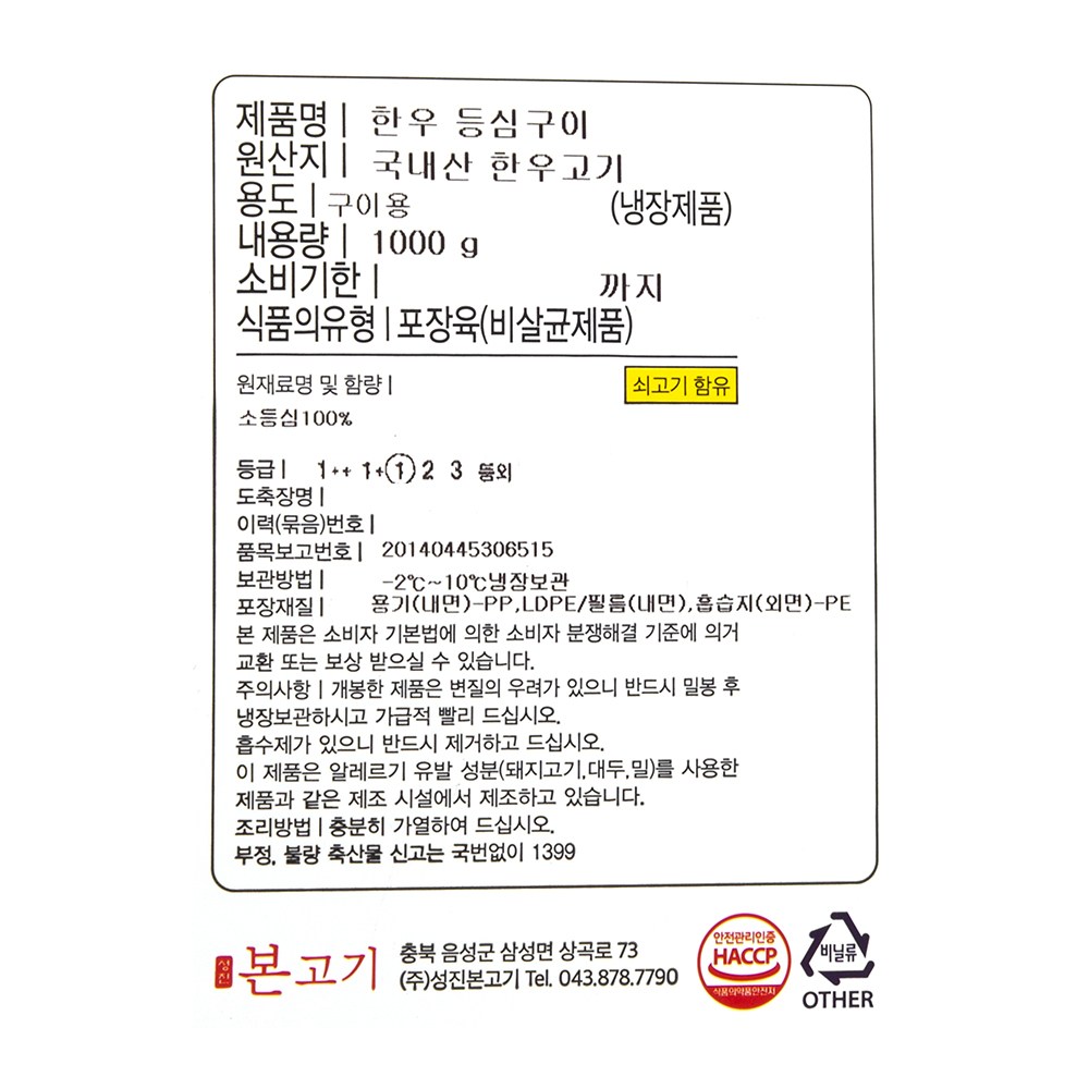 등심 숙성 기간 : 15일 이상 저온 숙성※ 육류 특성상 안내된 두께와 20% 내외의 편차가 발생할 수 있습니다.