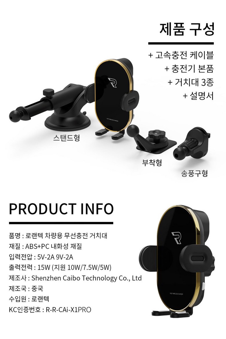 | 품명 및 모델명 | 로랜텍 차량용 핸드폰 고속 무선충전 거치대 POD센서 | 동일모델 출시년월 | 상품 상세페이지 참조 |