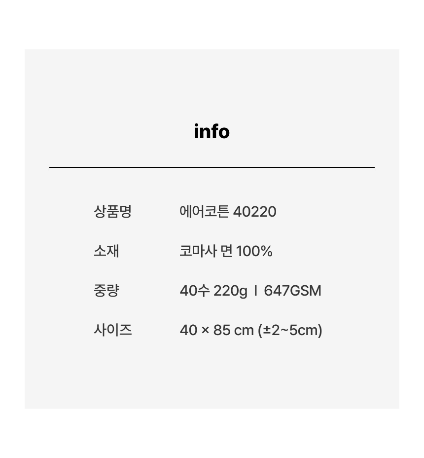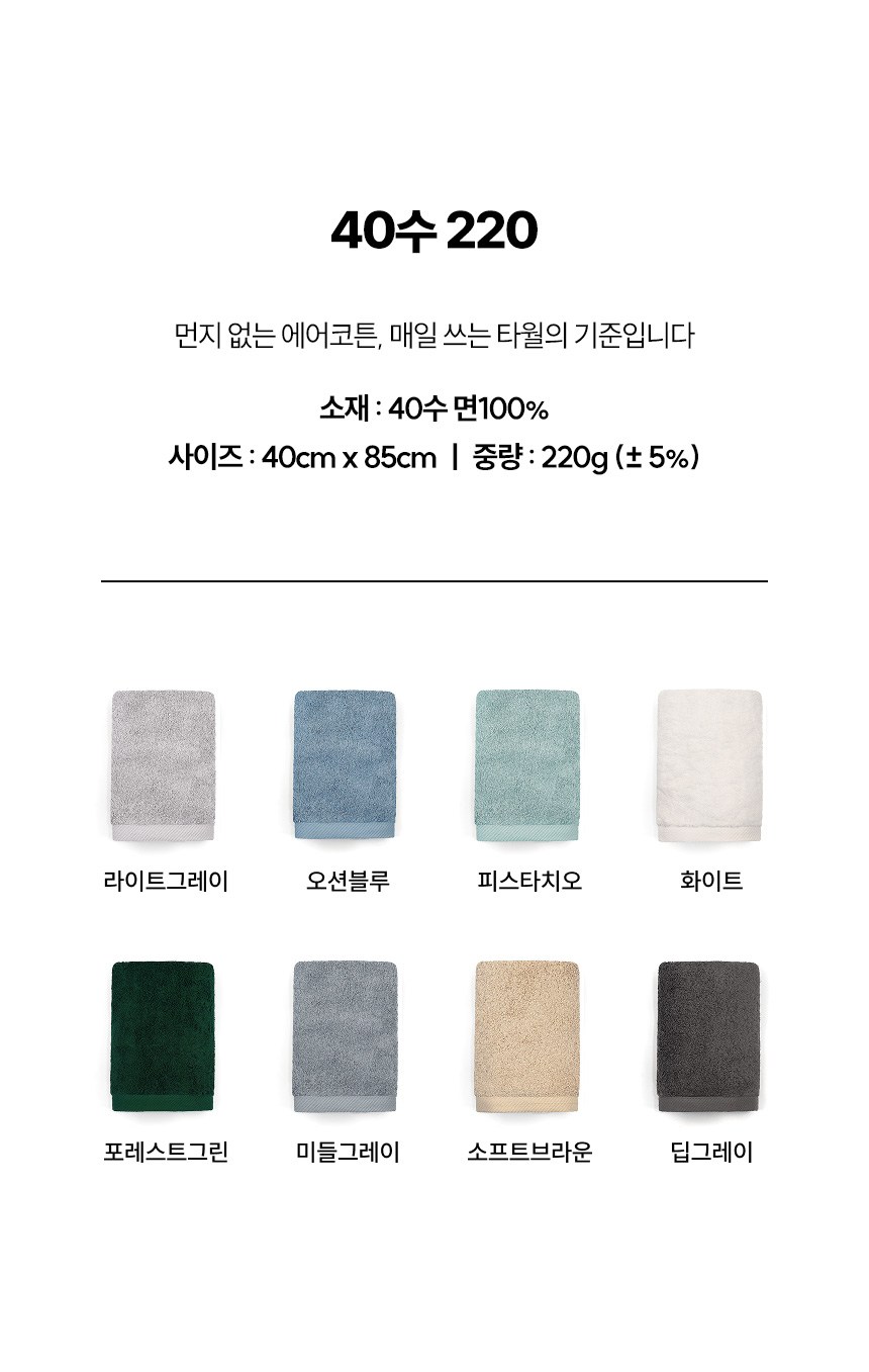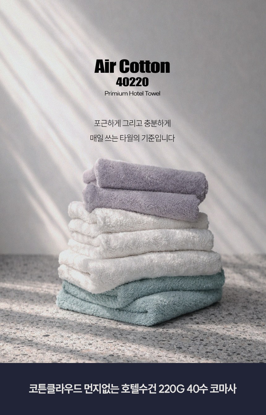 | 품명 및 모델명 | 코튼클라우드 호텔수건 220g 40수 코마사 | 인증/허가 사항 | 해당없음(14세 이상) |