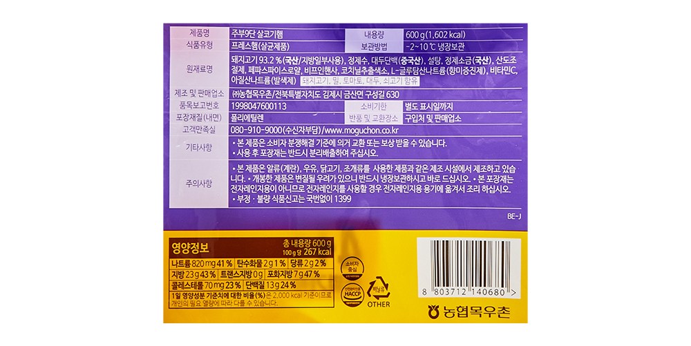 돼지고기 함량 93.2%의 주부9단 살코기햄