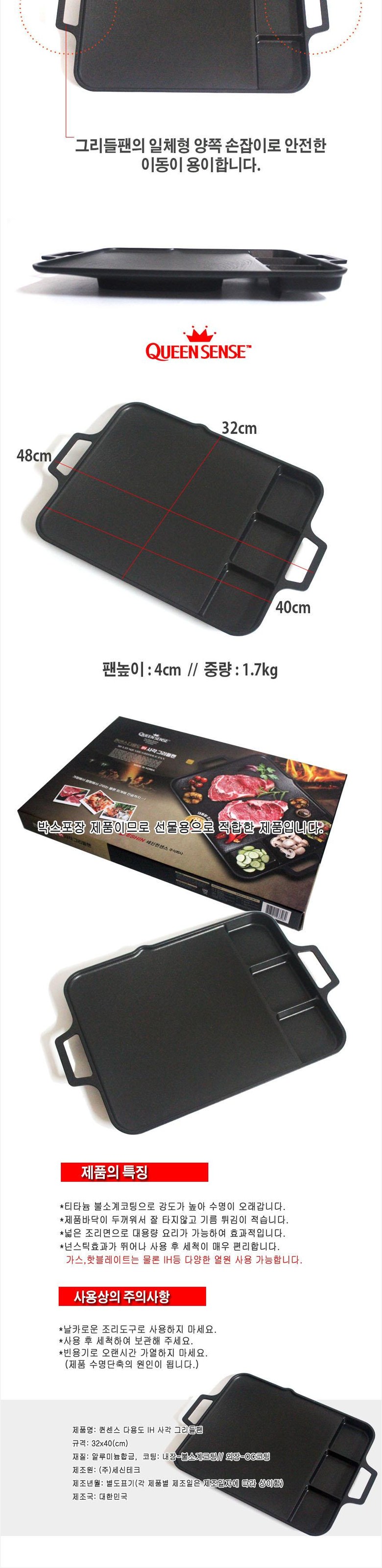 | 품명 및 모델명 | 퀸센스 IH 사각 그리들팬 | 인증/허가 사항 | 상품 상세페이지 참조 |