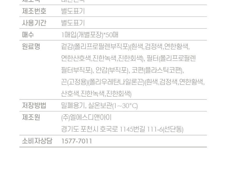| 제조국(원산지) | 대한민국 | 제조자(수입자) | (주)엘에스디앤아이 |