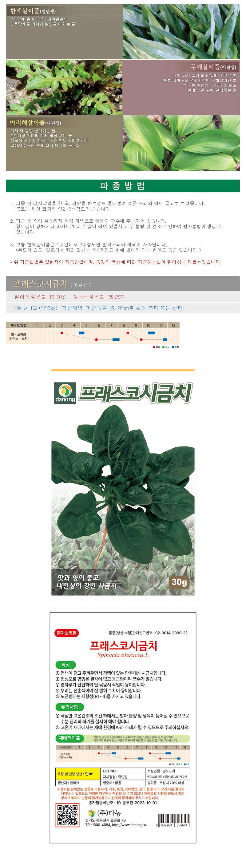 | 품명 및 모델명 | 다농 프래스코시금치씨앗 30g | 인증/허가 사항 | 컨텐츠 참조 |