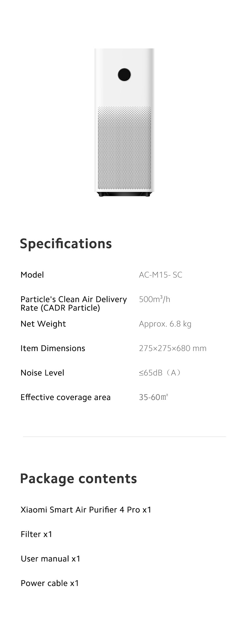 | 품명 및 모델명 | 샤오미 미에어 공기청정기 4 프로 / AC-M15-SC | KC 인증정보 | XU070130-21010A R-R-ZMi-AC-M15-SC |