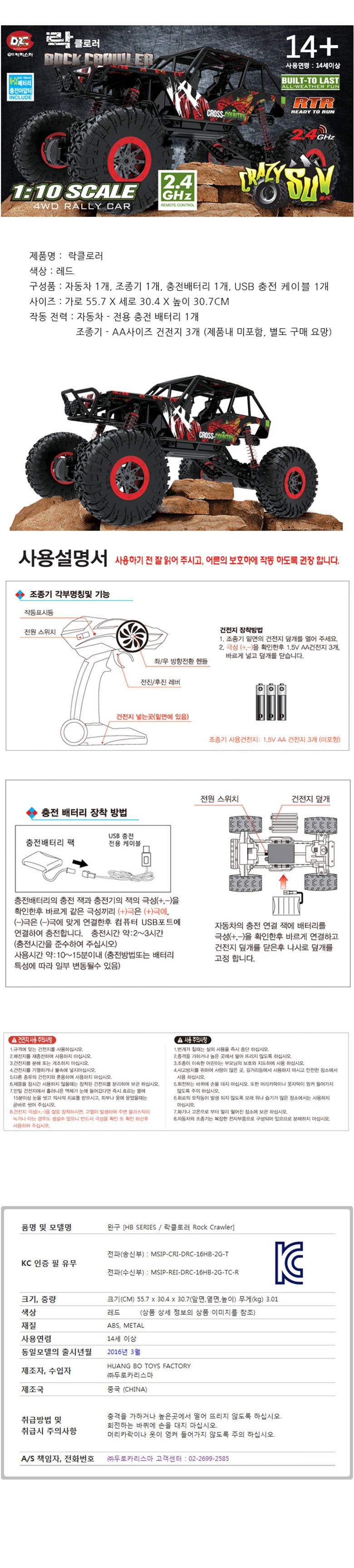 | 품명 및 모델명 | 두로_1:10락클로러RC카레드_HB SERIES-R | KC 인증정보 | 본체 : CB063R327-5001, MSIP-REI-DRC-16HB-2G-RC-R / 조종기 : MSIP-CRI-DRC-16HB-2G-T / 충전배터리: B052R577-8213A |