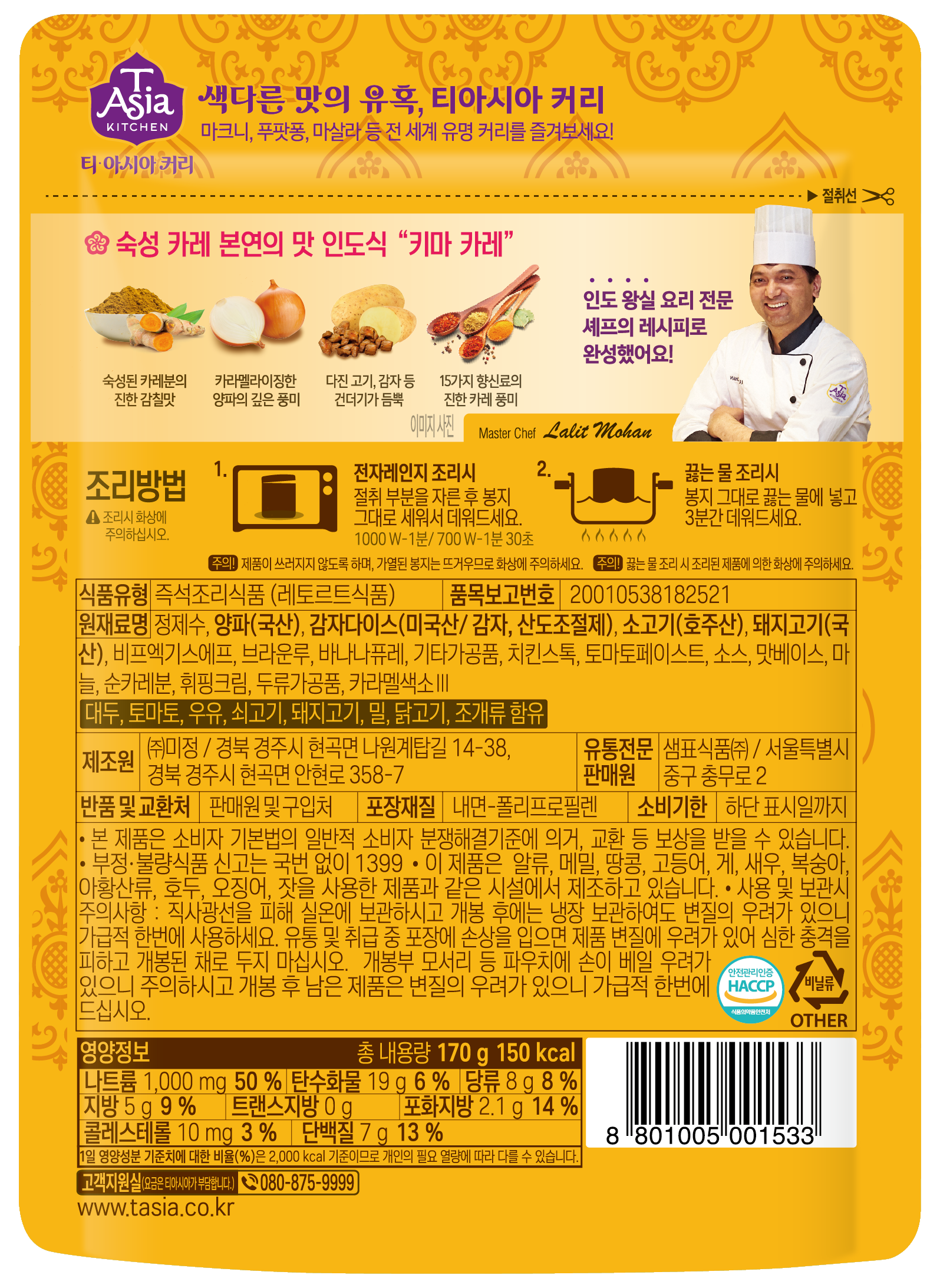 | 제품명 | 티·아시아 비프 키마 커리 | 식품의 유형 | 컨텐츠 참조 |