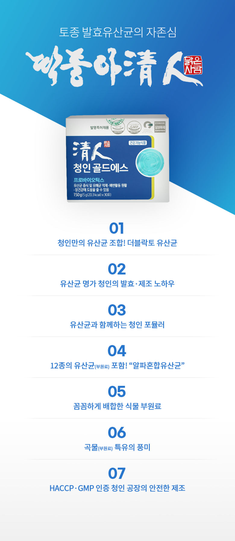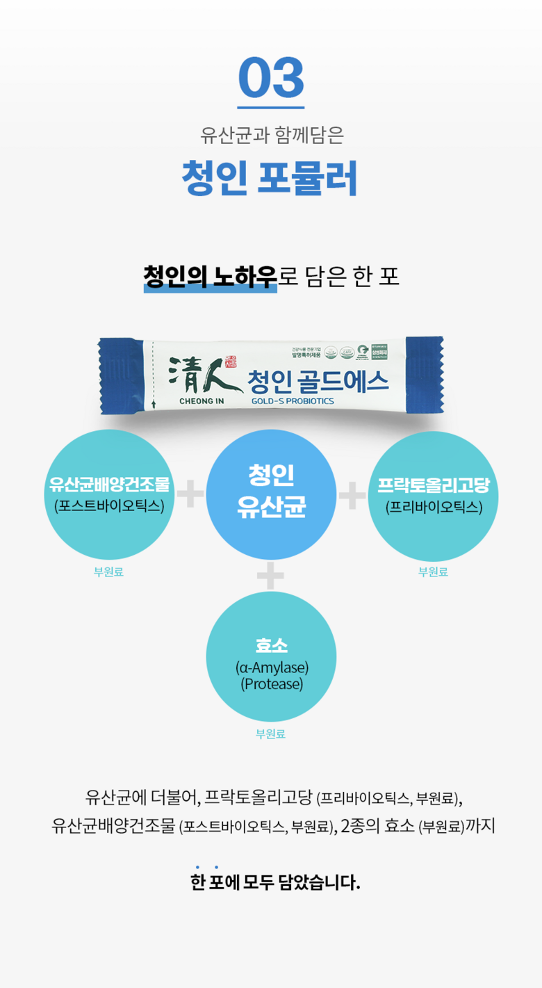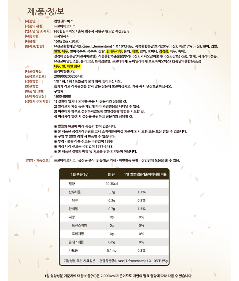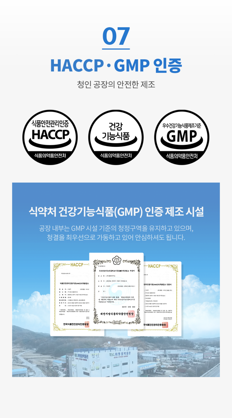 | 제품명 | 청인 골드에스 | 제조업소의 명칭과 소재지 | (주)힐링바이오/충북 청주시 서원구 현도면 죽전3길 8 |