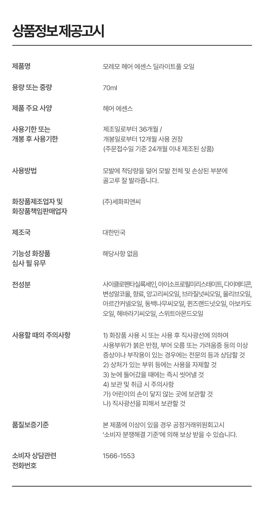 - 헤어케어 타입: 영양/윤기부여
