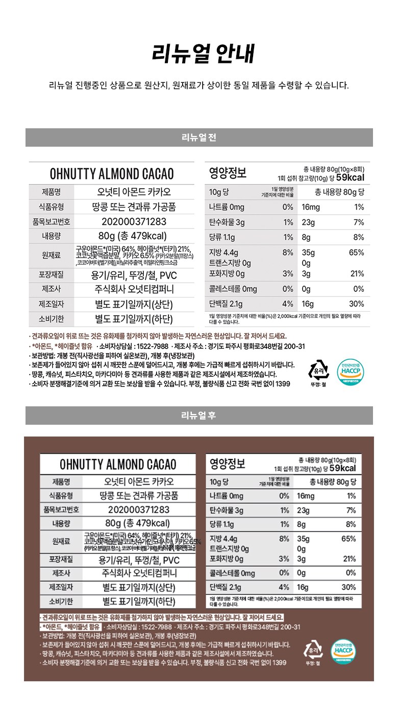 | 포장단위별 내용물의 용량(중량), 수량 | 컨텐츠 참조 | 원재료명 및 함량 | [리뉴얼전,후]컨텐츠 참조 |