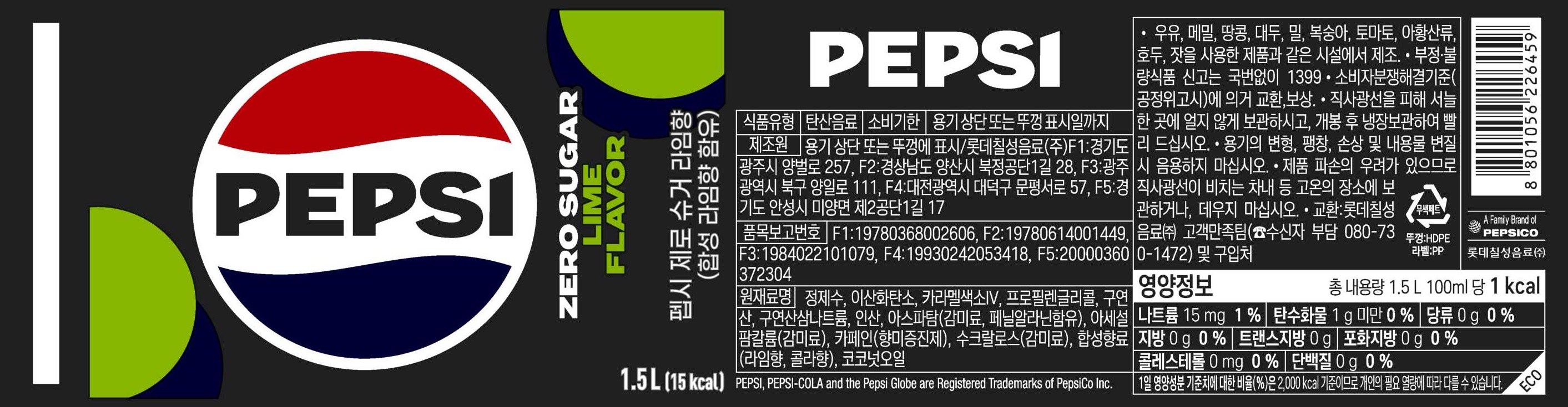 | 제품명 | 팹시 제로 슈거 라임향 | 식품의 유형 | 컨텐츠 참조 |