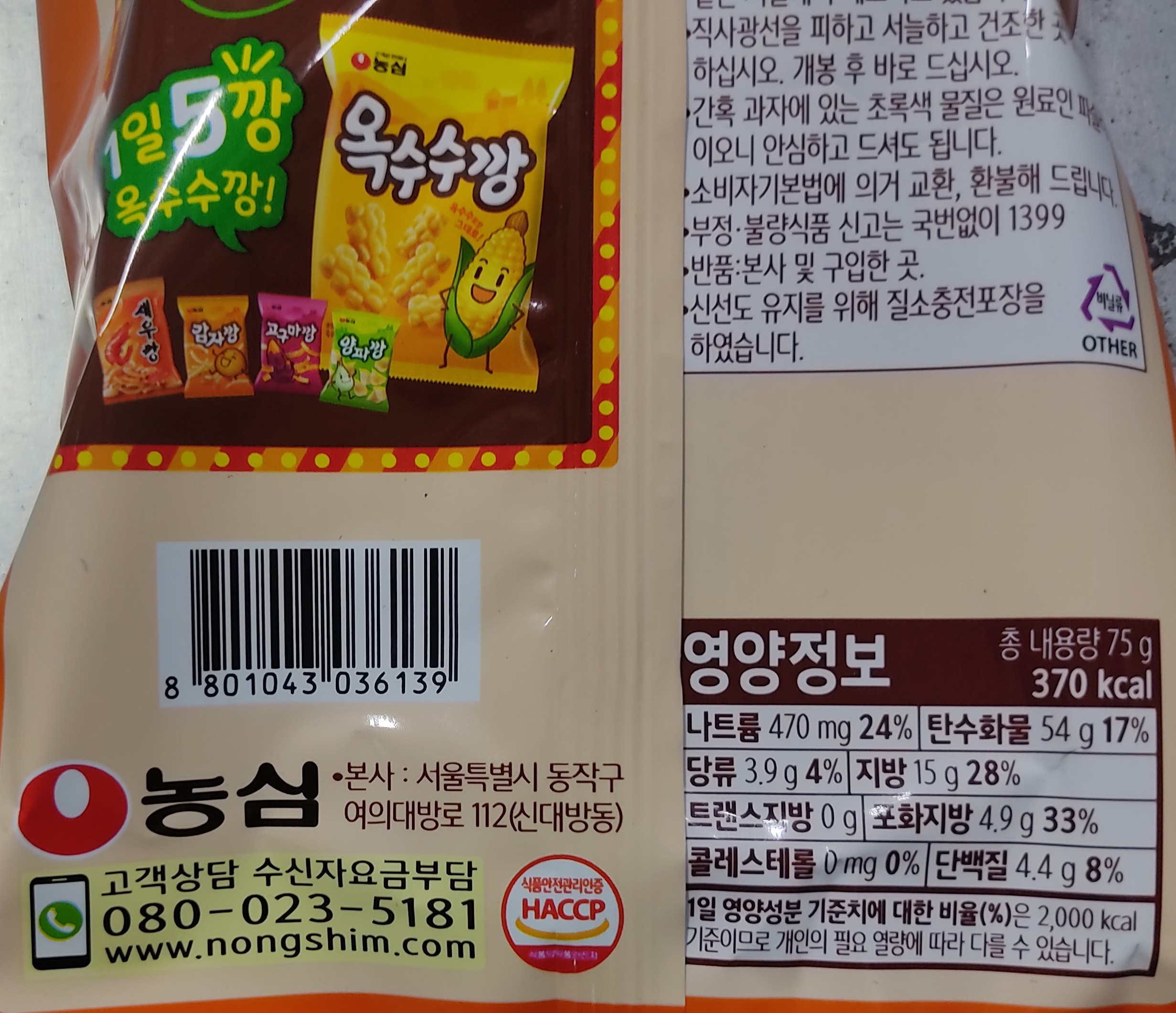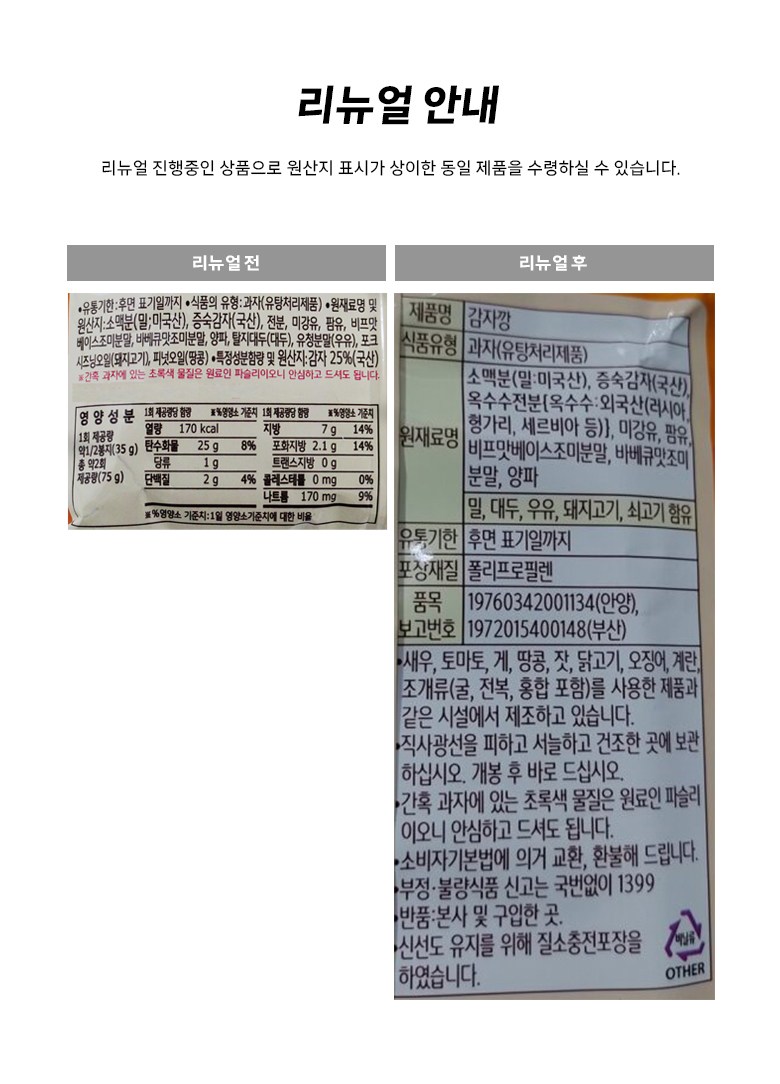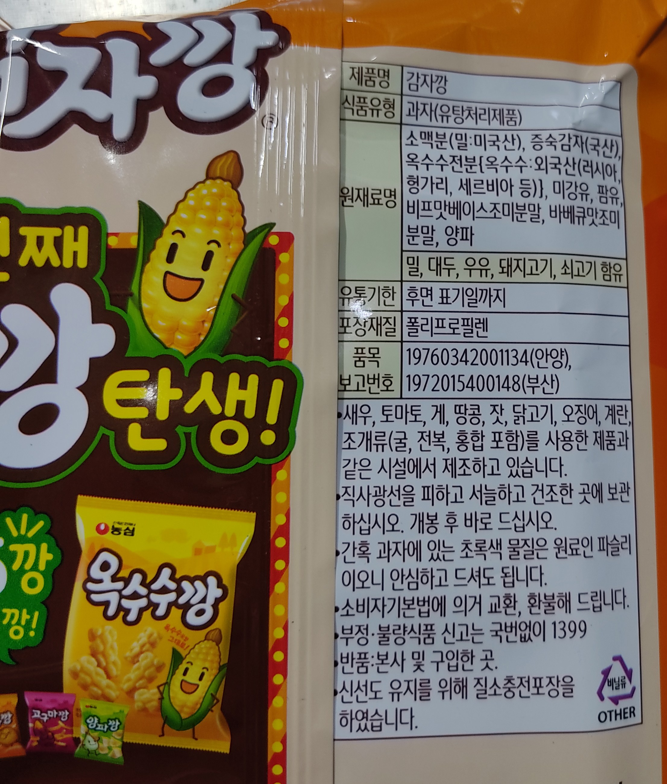 | 제품명 | 감자깡 | 식품의 유형 | 컨텐츠 참조 |