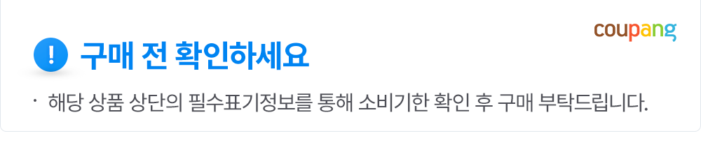 | 교환/반품 신청 기준일 | ㆍ단순변심에 의한 로켓배송 상품의 교환/반품은 제품 수령 후 30일 이내까지, 교환/반품 제한사항에 해당하지 않는 경우에만 가능 (교환/반품 비용 고객부담) ㆍ상품의 내용이 표시·광고의 내용과 다른 경우에는 상품을 수령한 날부터 3개월 이내, 그 사실을 안 날 또는 알 수 있었던 날부터 |