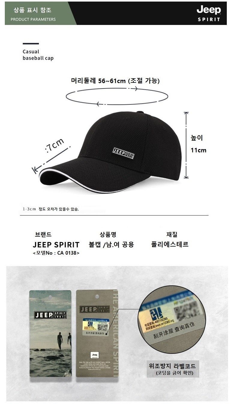 | 종류 | 캡모자 | 소재 | 플르에스테르 100% |