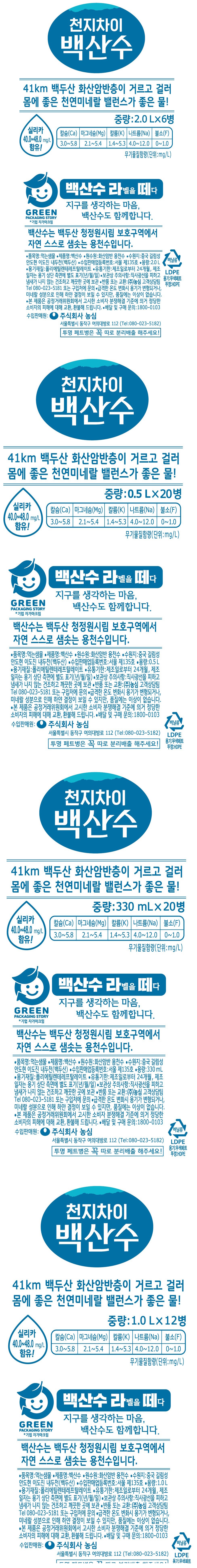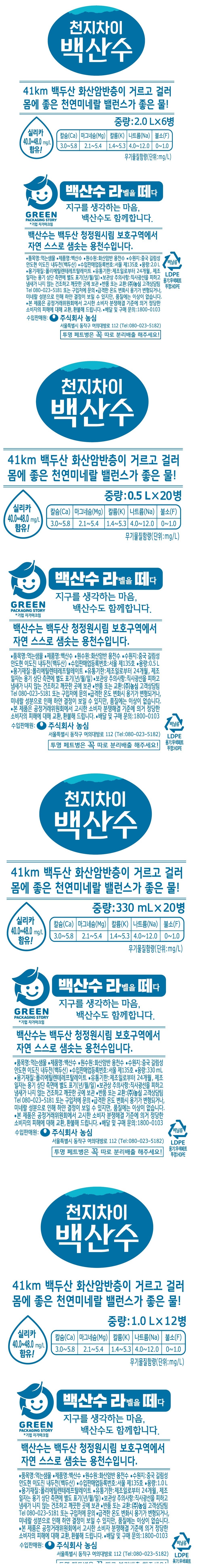 | 제품명 | 백산수 | 식품의 유형 | 먹는샘물 |